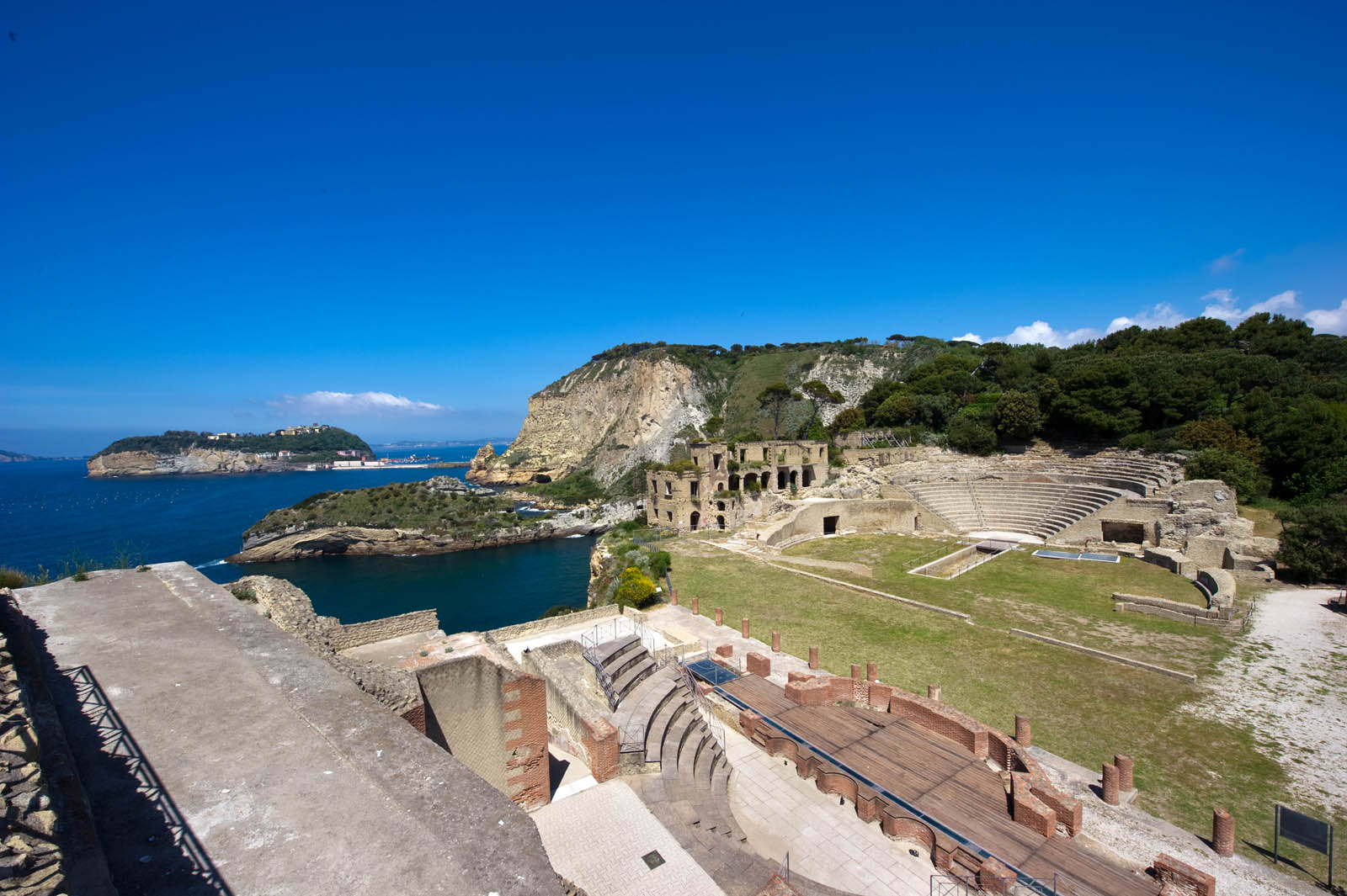 Una visita guidata consente di scoprire l'imponente galleria scavata nel tufo, lunga quasi 800 metri, e il parco archeologico con le rovine della villa di Pollione e dell'anfiteatro. Il panorama è da togliere il fiato.
